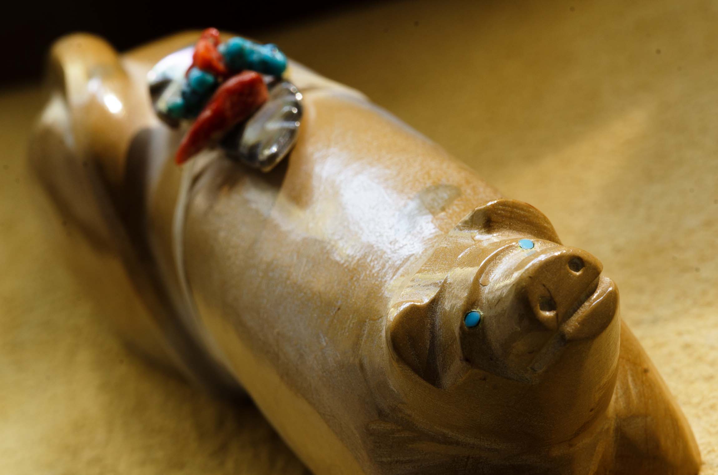 Regular price $1,500.00 USDSale price $1,500.00 USD Regular priceUnit price perSale Sold outDelvin Leekya Rainbow Dolomite Badger Sculpture This is a Zuni fetish stone carving. More than that it is a work of art. A small sculpture. It is...