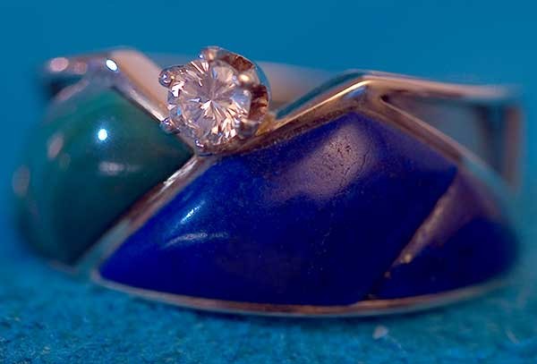 Regular price $8,950.00 USDSale price $8,950.00 USD Regular priceUnit price perSale Sold outNative American Gold and Lapis Ring Jewelry by legendary Navajo Silversmith James Little This is a heavy, solid 14k gold ring... featuring a Deep Blue Lapis...