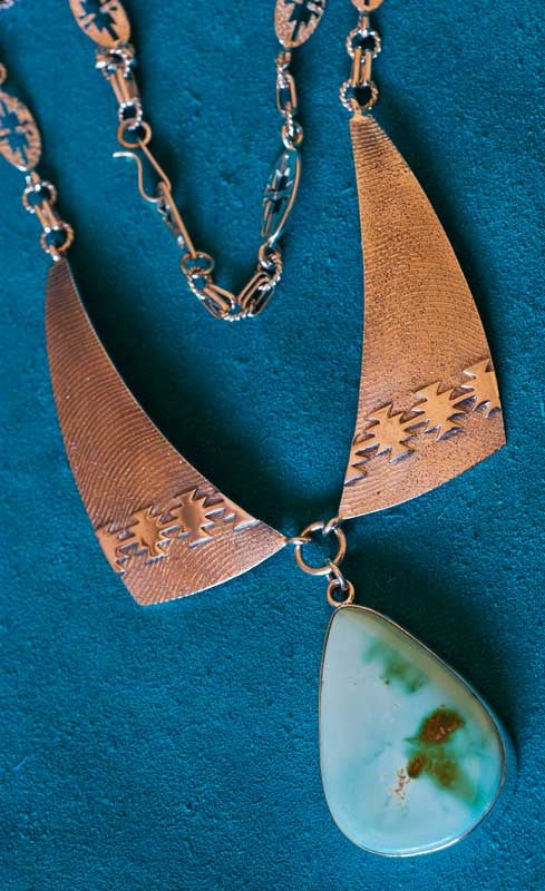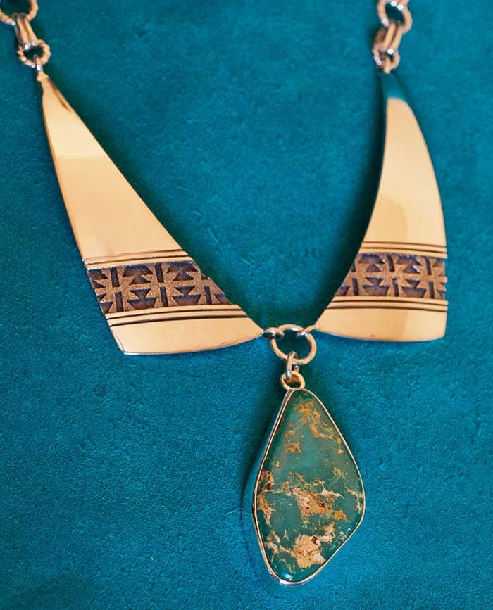 Regular price $2,400.00 USDSale price $2,400.00 USD Regular priceUnit price perSale Sold outAl Joe, natural gem grade, Blue Royston Turquoise set in a handmade Eagle Pendant This pendant was inspired by a Eagle Pendant design from the 1980's....