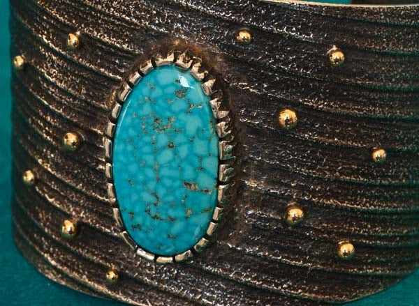 Southwest Turquoise Bracelet, Silver, Gold and Rare Turquoise handmade Wes Willie