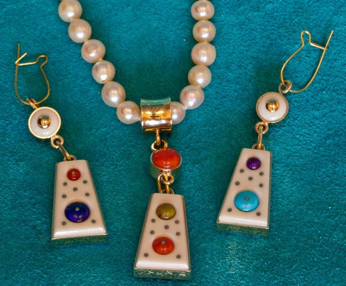 Regular price $1,450.00 USDSale price $1,450.00 USD Regular priceUnit price perSale Sold outBoyd Tsosie Two Sided Gold Pendant with 14k gold, turquoise, coral, ironwood and fossil ivory inlay. This was completely handemade by Boyd Tsosie. I know of no other...
