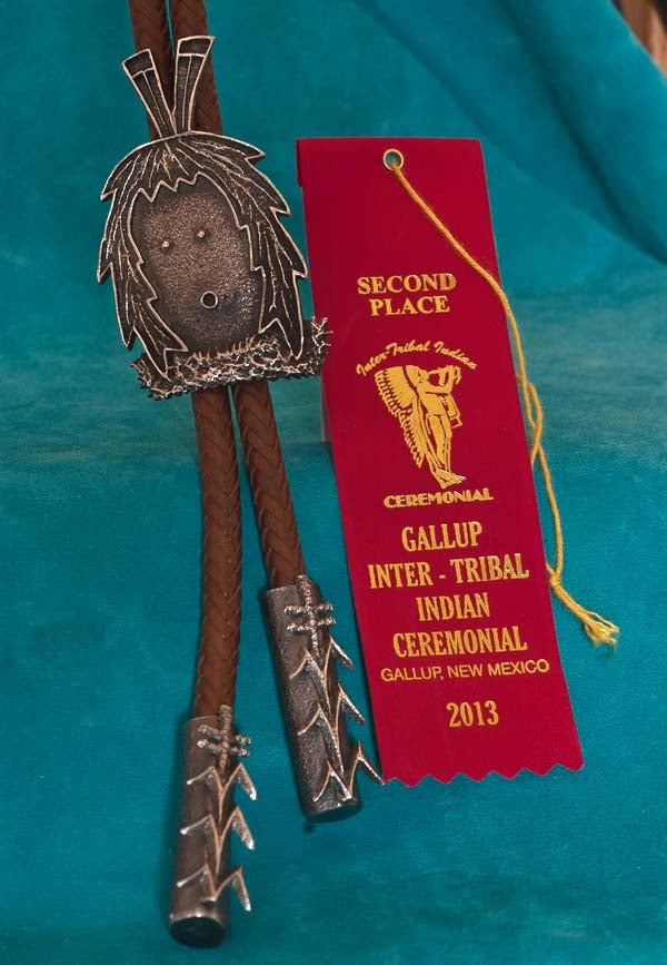 Regular price $1,850.00 USDSale price $1,850.00 USD Regular priceUnit price perSale Sold outThe Bolo Tie is the face of a Yei Be Che. It was Tufa Cast in silver. The Yei Be Che is a Navajo Deity. The bolo...
