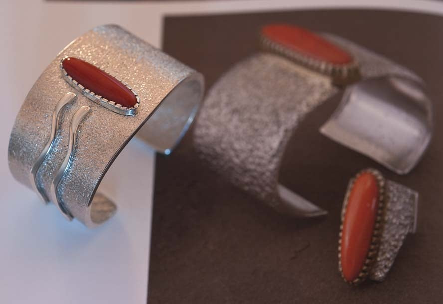 Regular price $1,275.00 USDSale price $1,275.00 USD Regular priceUnit price perSale Sold outRed Coral Bracelet by Matthew White This is a heavy silver bracelet that is beautifully detailed both inside and out. The Coral is a deep red...