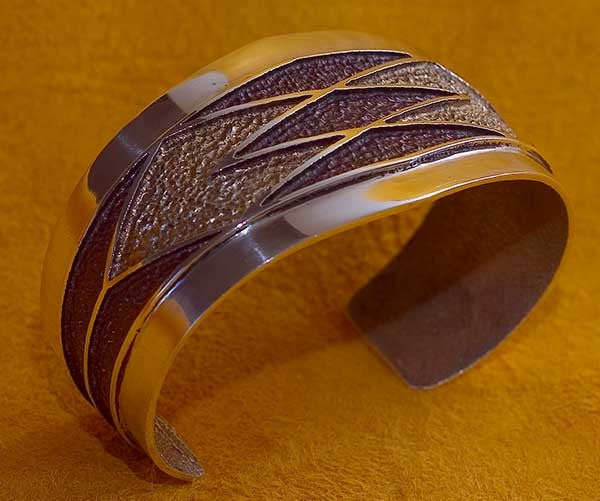 Regular price $1,250.00 USDSale price $1,250.00 USD Regular priceUnit price perSale Sold outSilver Overlay with Silver Granulation Featuring a beautiful spider web Red Mountain Turquoise gem 1 1/8" wide This Richard Tsosie Native American Silver Turquoise Bracelet is...