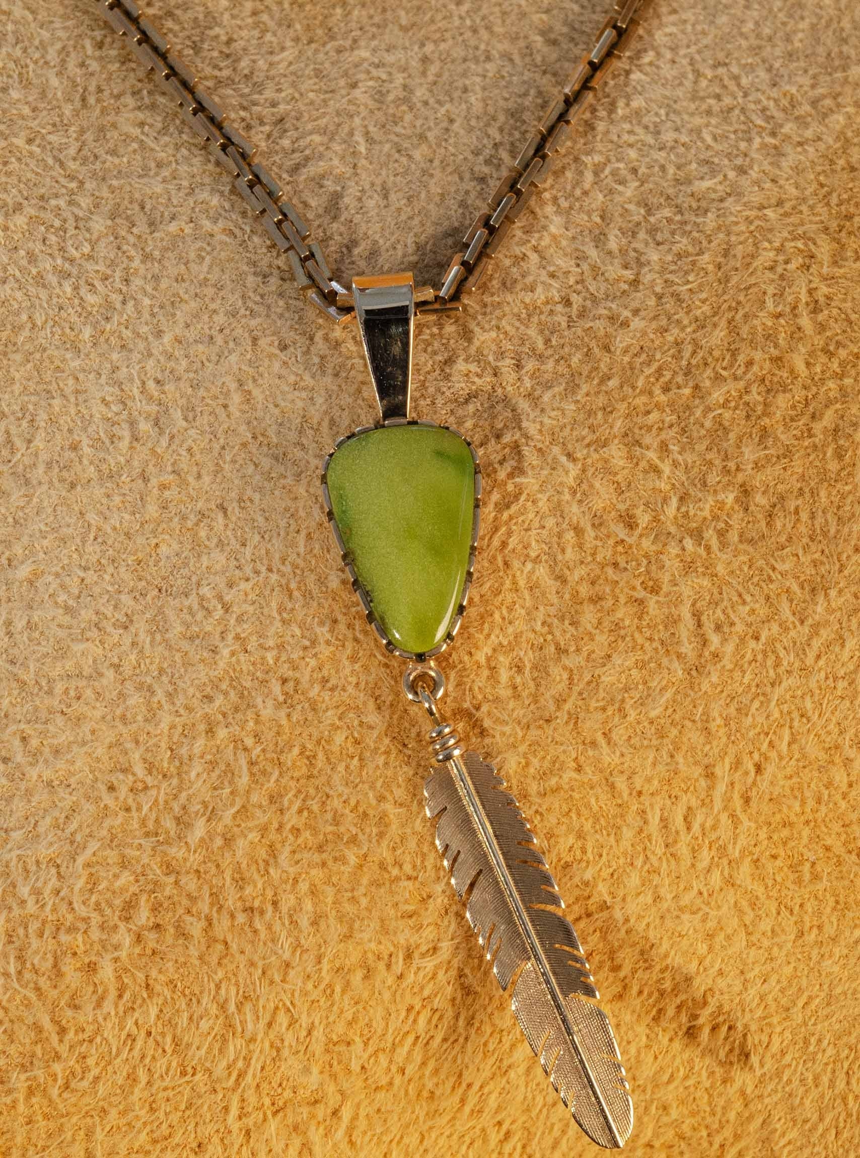 Boyd Tsosie Gold Turquoise Feather Pendant