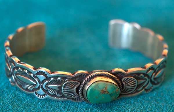 Boyd Tsosie Silver Gold and Turquoise Wave Bracelet-2