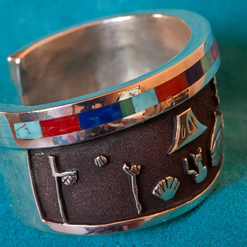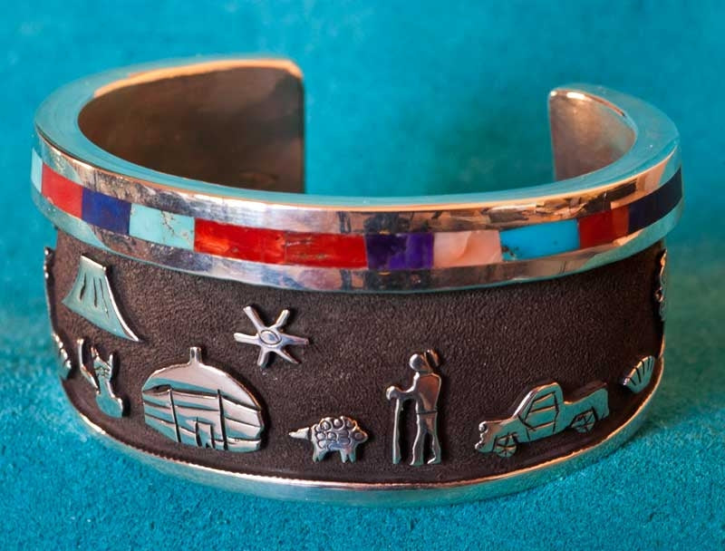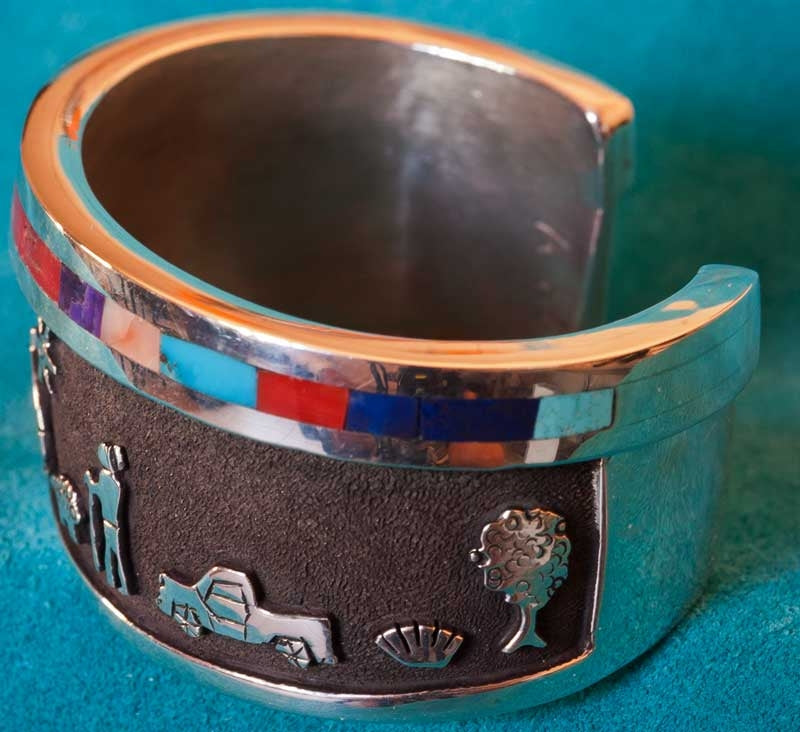 Albert Leonard Haskie, Silver and Gem Inlay Storyteller Bracelet