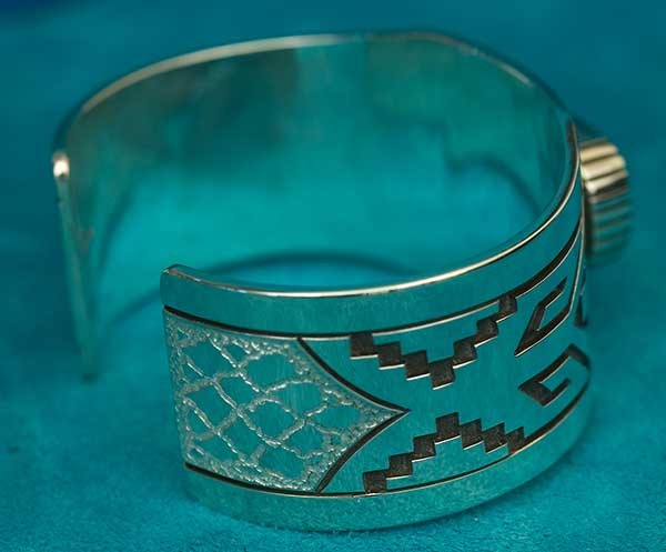 This Alton Bedonie China Mountain Turquoise Bracelet measures1 1/4" wide