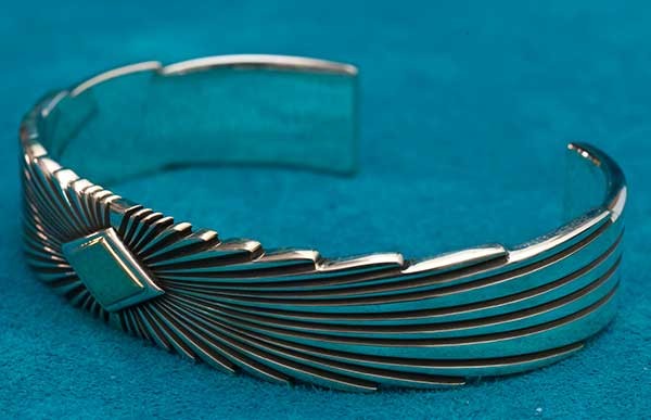 This Pat Bedonie native american jewelry Silver and Gold Stamped Bracelet is for a 6 3/4' wrist