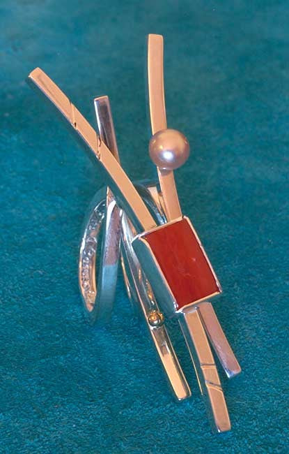This Fritz Casuse native american jewelry Coral and Pearl Puzzle Ring is sized to fit a 6 1/2" Finger