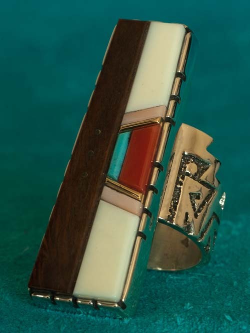 Silver Inlaid with 14K Gold, Turquoise, Ironwood and Coral