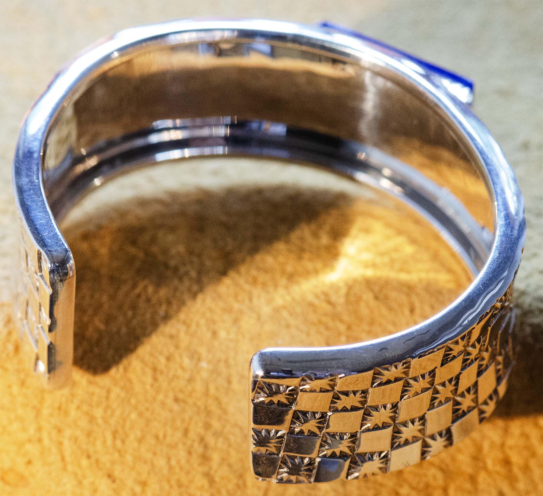 The bracelet was designed and entirely handmade by Sam LaFontaine. It is new and was made Circa 2000. It was stored all these years in our Company Vault.