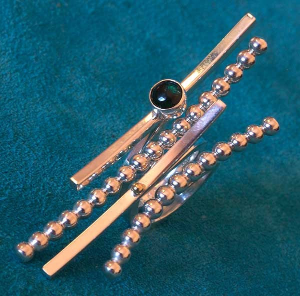This Fritz Casuse native american jewelry Dark Iridescent Green Topaz Puzzle Ring is sized to fit a 6 3/4" Finger