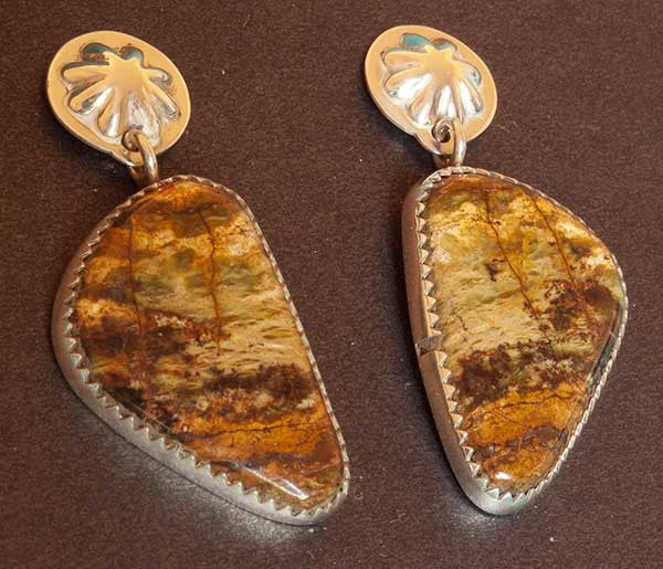 These Ray Scott Arizona Nantive American Serpentine Silver Earrings are 1 5/8" long