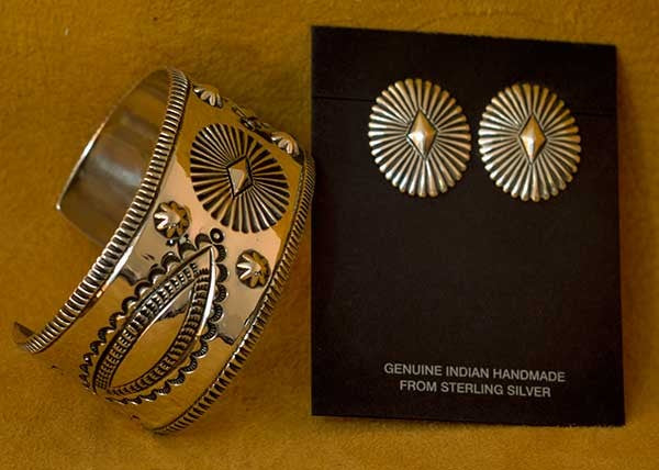 These Thomas Curtis Stamped native american jewelry Silver Earrings measure1" x 3/4"