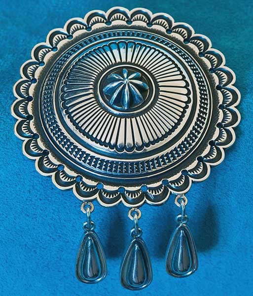 This Native American Jewelry Silver Pin measures 2 1/2" Diameter