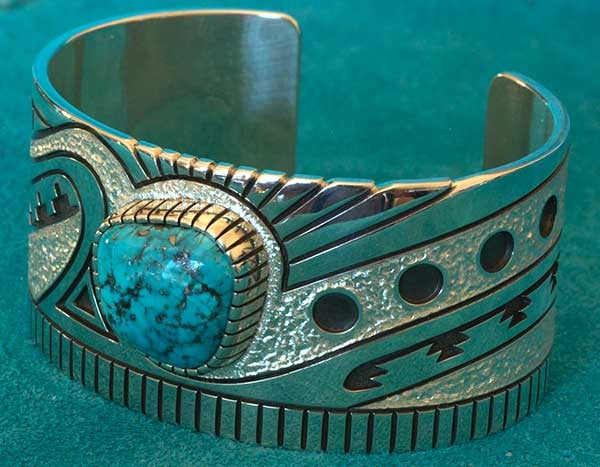 This Alton Bedonie Native American Turquoise Bracelet is 1 1/4" wide