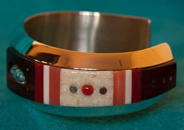 Native American Turquoise coral Fossil Ivory Bracelet jewelry by Richard Tsosie