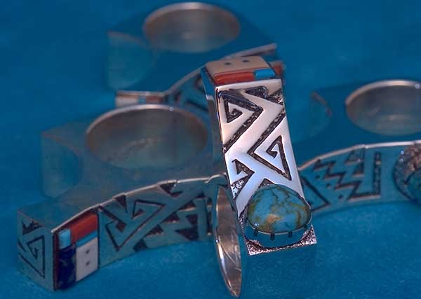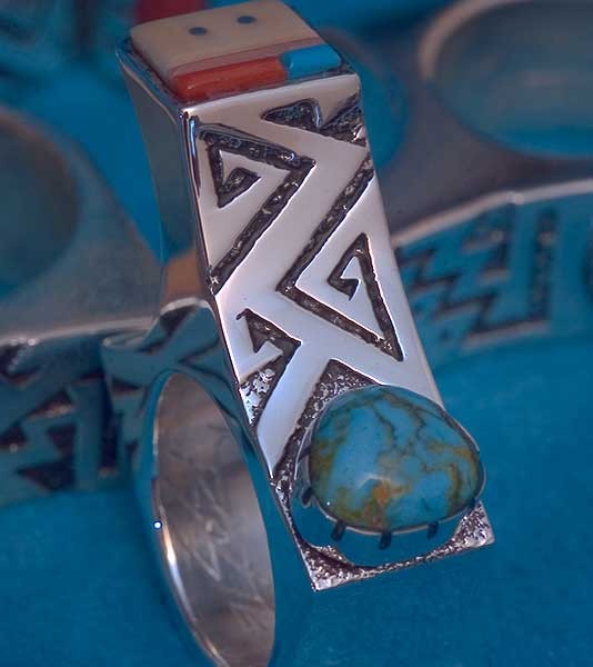 This Richard Tsosie Turquoise 2 Finger ring measures 1/2" wide