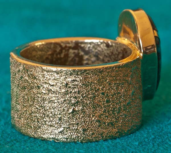 Wes Willie does not often make rings. This is the second 14K Gold ring we have had from Wes. The first had a Lone Mountain Turquoise gem and now this one in Bisbee. Bisbee Turquoise is becoming exceedingly scarce and quite difficult to come by... especially in this fine gem quality.