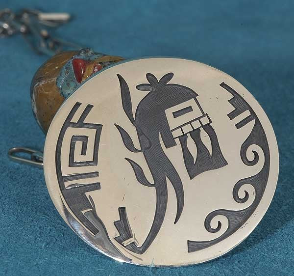 The Long Hair Kachina appears in the Spring to bring a good crop It is a symbol of strength and prosperity 2" diameter Lawrence handmade chain...