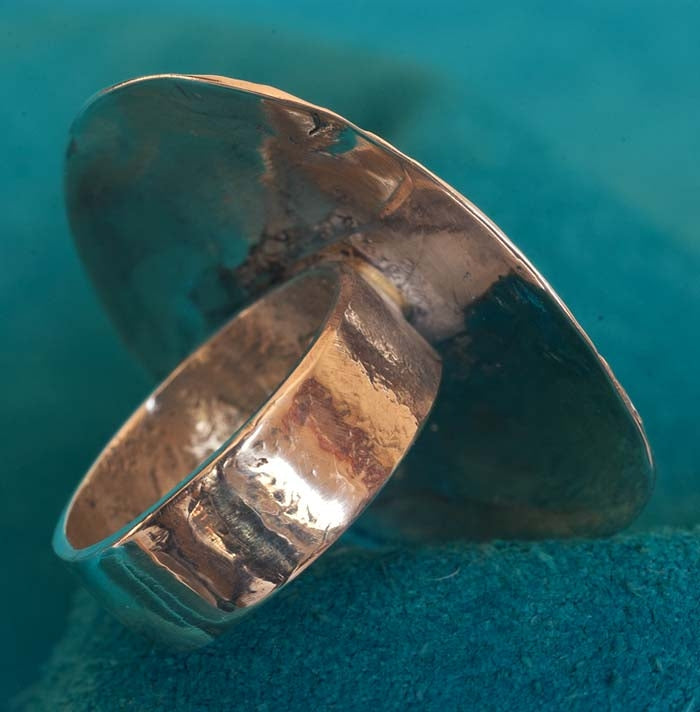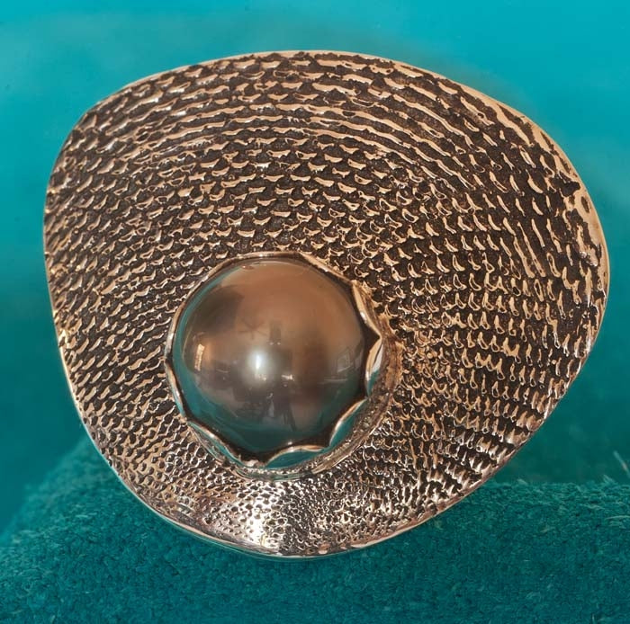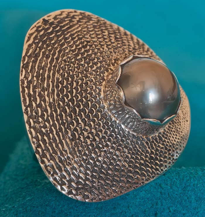 Silver Ring with a large Tahitian Pearl set in a Clam Shell design handmade by Steve LaRance
